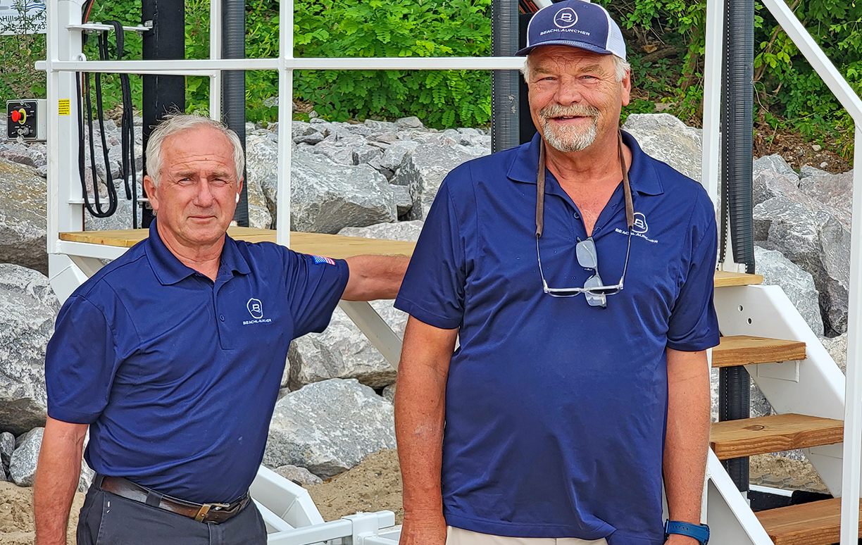 Never resting on their laurels, Beachworks is currently developing the M.O.A.B. (Mother of All Beachlaunchers), which will be capable of launching boats up to 18,000 pounds and 40 foot in length. To date, a total of 65 hydraulic Beachlauncher units with Kohler (EFI) Electronic Fuel Injected engines, have been delivered to clients in Wisconsin, Illinois, Florida, Montana, Buffalo N.Y., British Columbia, Ontario, and the Fiji Islands.
